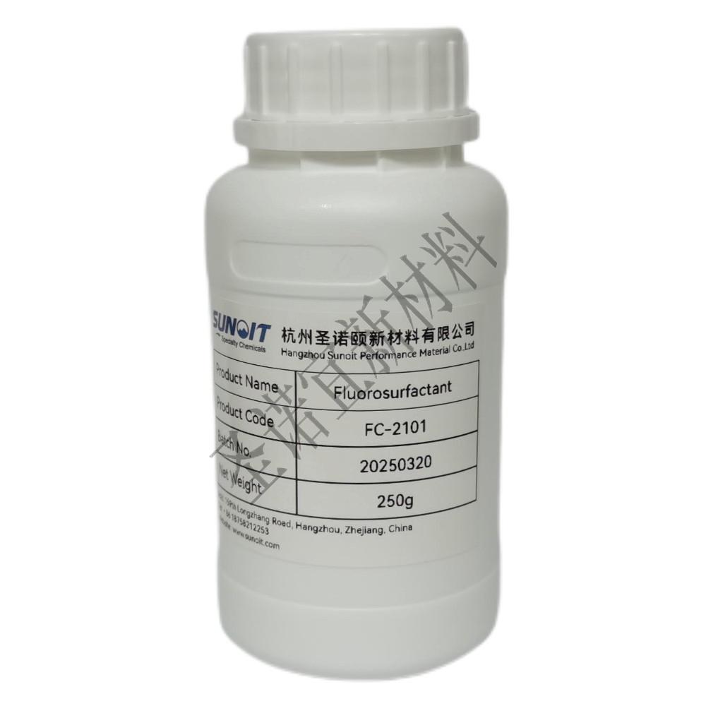 FC-2101是一款水性的阴离子含氟表面活性剂,在极低的浓度下即可显著降低水相表面张力,并减少泡沫。FC-2101可为水性涂料体系提供优异的润湿、流平和防粘连和拒油性能。