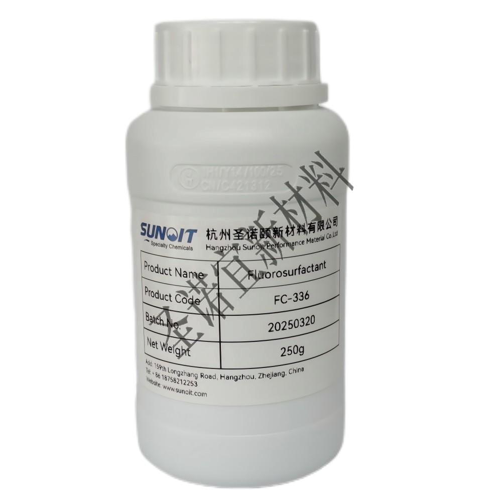 FC-336 是一款由碳六(C6)氟聚物和碳氢表面活性剂组成的两性氟表面活性剂。FC-336 采用调聚法生产工艺,不含有全氟辛基磺酸盐(PFOS),同时性能上可以和传统碳八(C8)氟表面活性剂媲美。它能在极低的浓度下降低水溶液的表面张力。它能形成一层水膜,该水膜能在燃烧的火焰表面蔓延。因此,FC-336 被广泛用作针对碳氢化合物和极性液体火灾的泡沫灭火剂中的成膜剂。